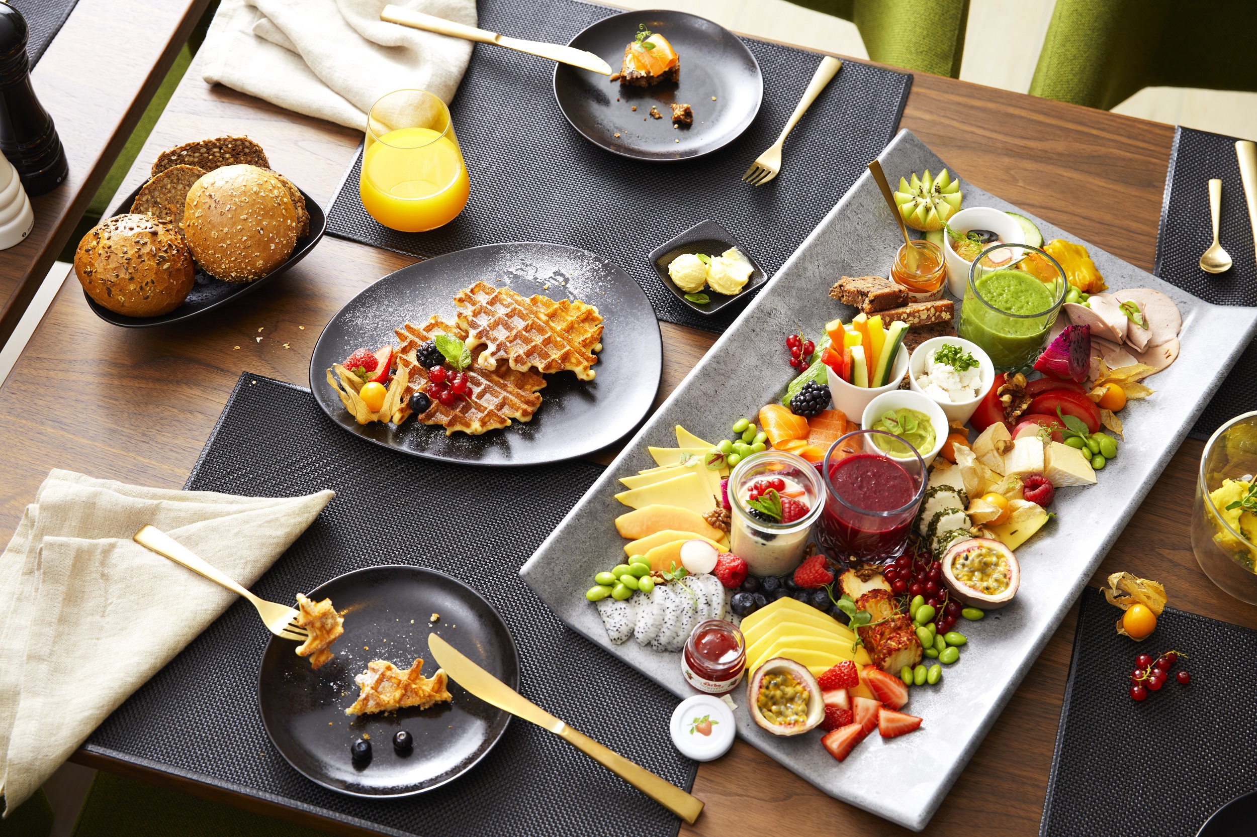 Die Showküche im Mittelpunkt des Restaurants bietet den Gästen ein besonderes Erlebnis: Sie können live dabei sein, wenn die verschiedenen Gaumenfreuden vor ihren Augen zubereitet werden. Die modern interpretierte Küche auf pflanzlicher Basis verspricht eine vielfältige Auswahl an Gerichten, die nicht nur nachhaltig sind, sondern auch geschmacklich überzeugen.