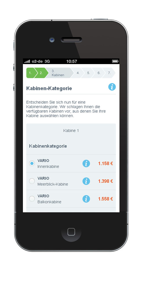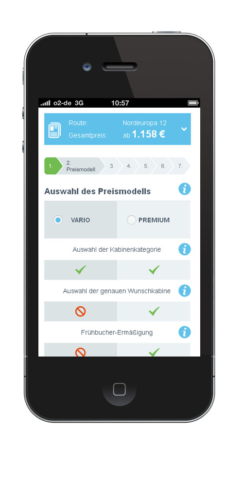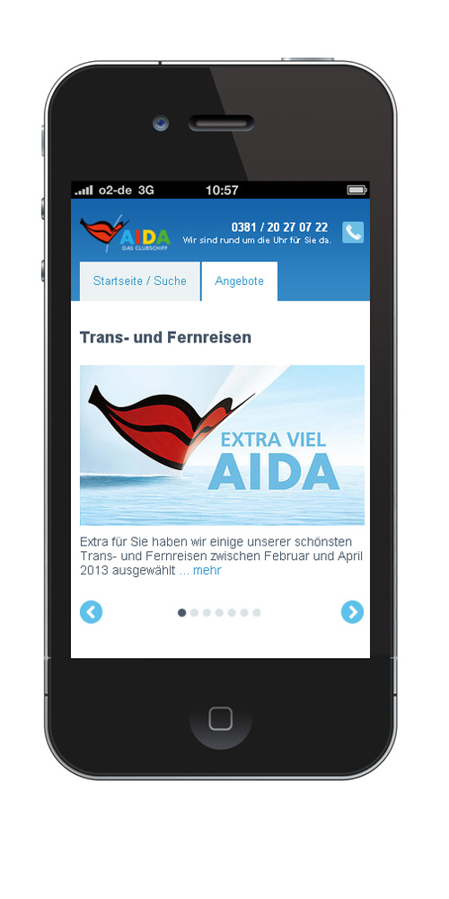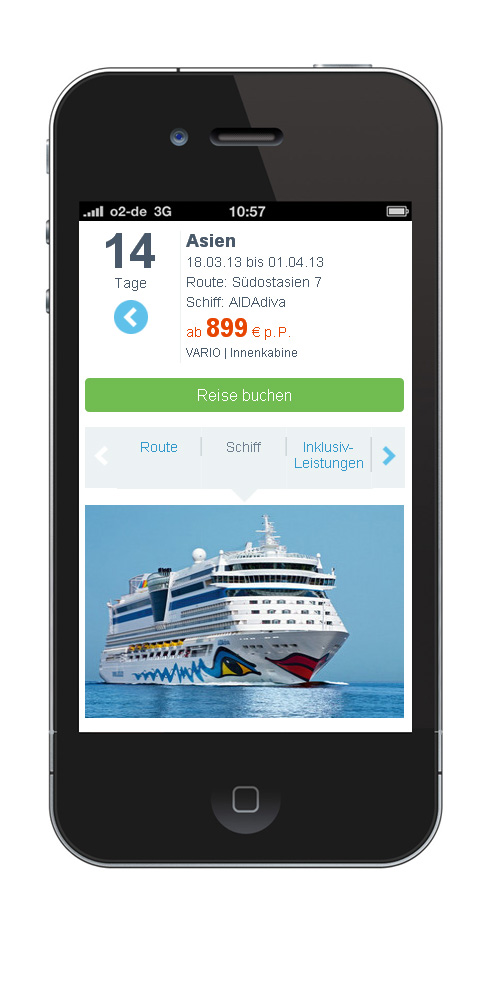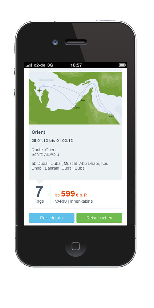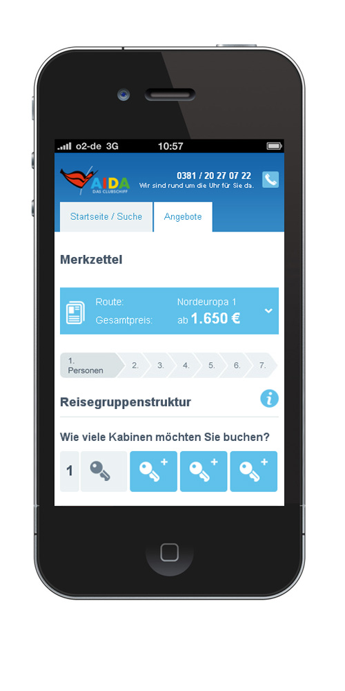 Das besondere Plus: Buchen Sie die AIDA Kreuzfahrt direkt auf Ihrem Handy. Ein intuitives Buchungstool führt Sie Schritt für Schritt sicher durch die Reisereservierung. Auch Ihre An- und Abreise organisieren Sie bequem über das neue AIDA Mobilportal.
